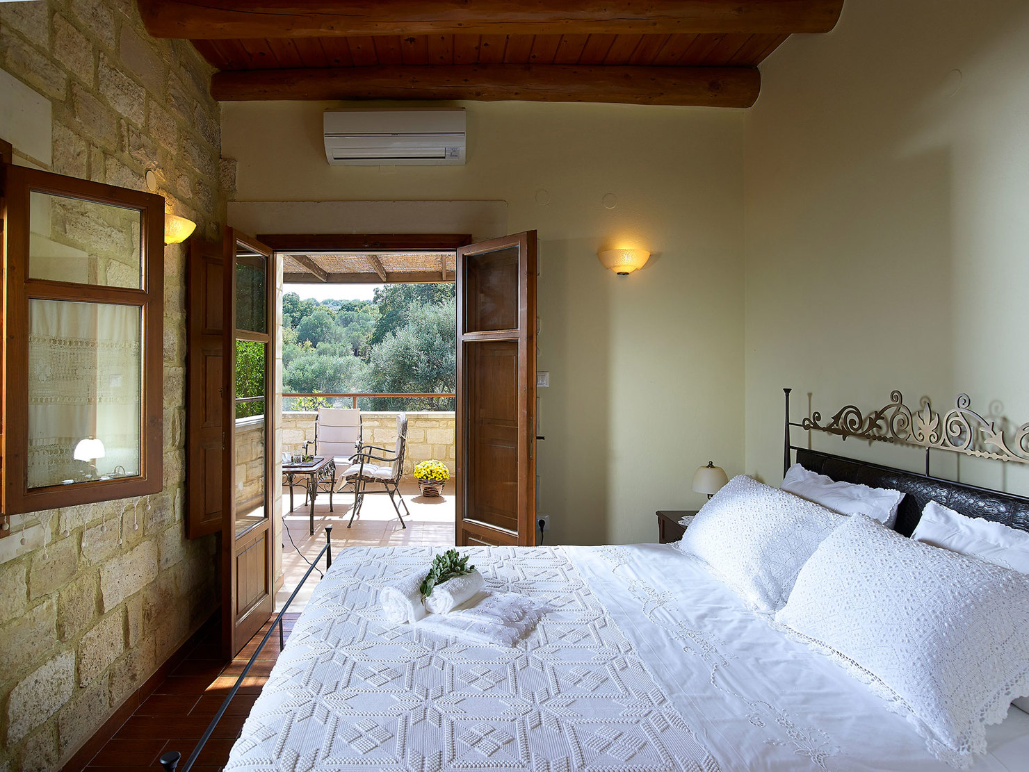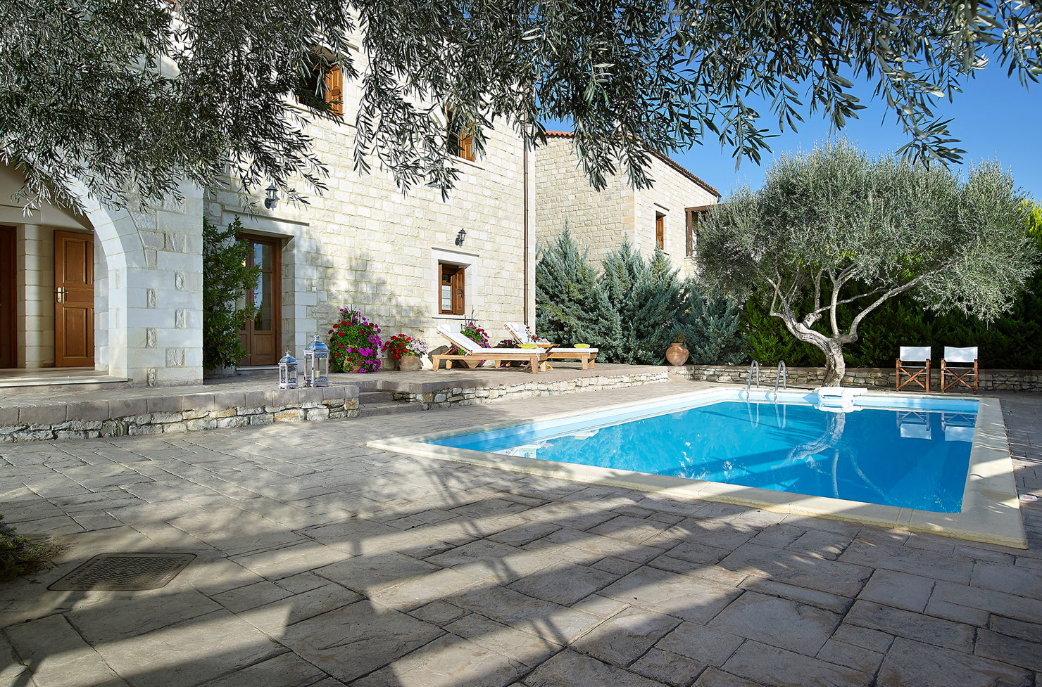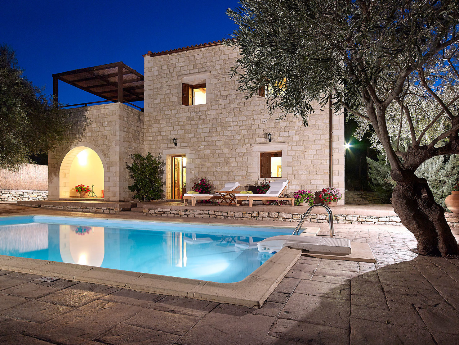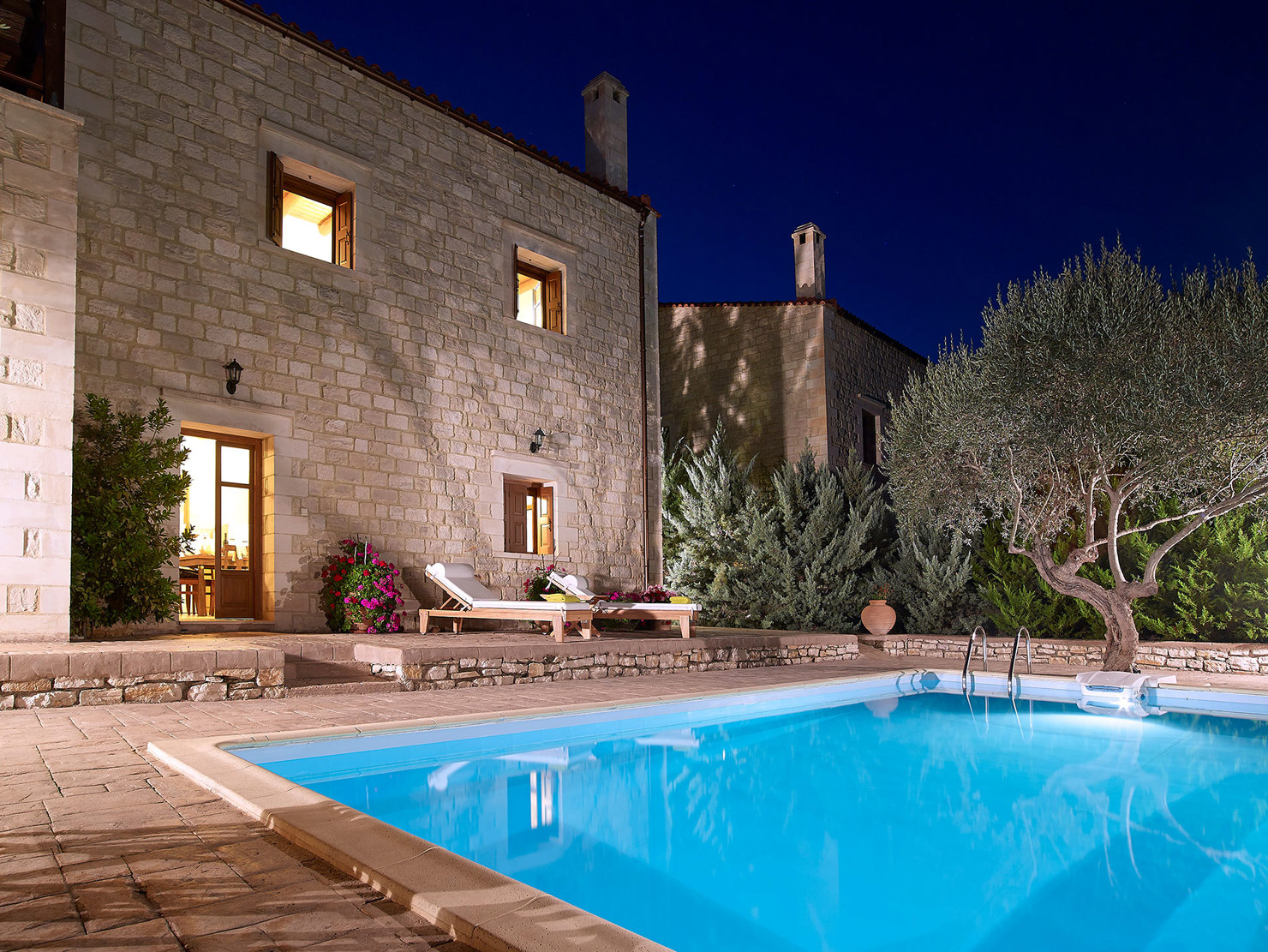 Αφεθείτε στην κομψότητα και την άνεση σε αυτό το εκπληκτικό πέτρινο καταφύγιο. Οι ευρύχωροι εσωτερικοί χώροι περιλαμβάνουν άνετα υπνοδωμάτια και μια πλήρως εξοπλισμένη κουζίνα με vintage εξοπλισμό. Το υπνοδωμάτιο στο ισόγειο διαθέτει ένα πολυτελές ιδιωτικό μπάνιο με τζακούζι, προσφέροντας τον απόλυτο χώρο για χαλάρωση και ξεκούραση. Σε εξωτερικούς χώρους, απολαύστε την ιδιωτική πισίνα, τους καταπράσινους κήπους με εκατόχρονες ελιές και μια σκιερή τραπεζαρία, ιδανική για μια γαλήνια και πολυτελή απόδραση.